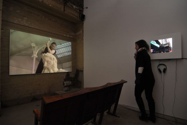Das 7-Minuten-Video „Habla (Talk)“ (2008) reinszeniert eine Anekdote über das Künstlergenie Michelangelo, der seiner– nach Eigenaussage lebendigsten– Skulptur, jener des Religionsgründers Moses, mit dem Meißel ans Knie geschlagen und ihn auffordernd gefragt haben soll: „Warum sprichst du nicht?!“ Moses aber schaute einfach in die andere Richtung. Die Künstlerin nähert sich der gigantischen Figur mit dem Hammer in der Hand.