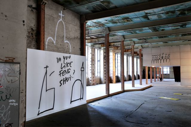 Der Rumäne Dan Perjovschi stellt sich seine Welt aus Alltagsbeobachtungen und Betrachtungen zu makropolitischen Ereignissen täglich neu zusammen. Stets das Notizbuch in der Jackentasche, ist er ständig am Sammeln und Zeichnen. Ebenfalls sparsam mit wenigen, klaren Linien wurden das Mischwesen „Goddevil“, der „Church Dick“, die sieben Heiligen, die karikatureske Evolution von „Bible“ zu „Google“, die zynische Aufforderung an den am T der Kunst Gekreuzigten „You can get down. The press is gone.“ oder die Dialoge zwischen Kirche und Moschee „Do you like feng shui?“, Kirche und Bank „What's your interest?“, Kirche und Medien „I reach CNN“ auf die Wände in der Ausstellungshalle übertragen, nicht ohne genügend Raum für Interpretationen zu lassen, damit der Betrachter sein eigenes „mentales Gemälde“ zu Perjovschis Vorgabe weiterentwickeln möge.