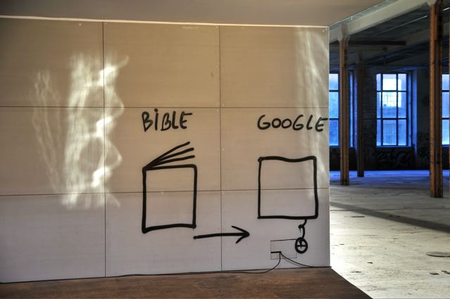 Die zweite Arbeit „bad religion“ (2011) scheint überlastet mit Bibel, Koran, Thora, Thalmud, Mischna, Kabbala wie auch allerlei Schlüsselwerken aus der buddhistischen und hinduistischen Religionsschreibung.