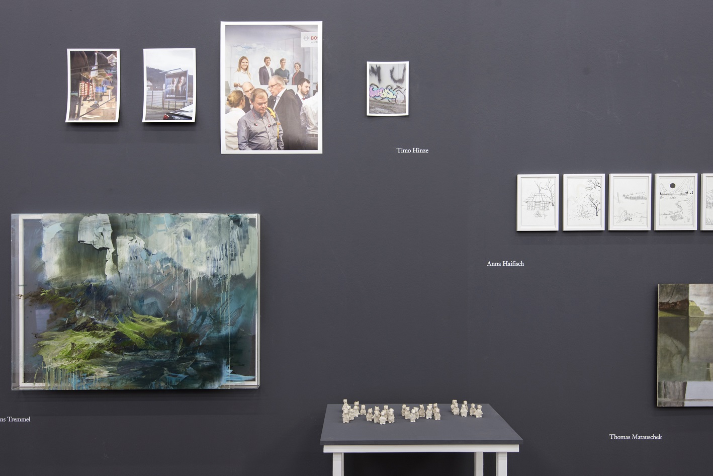 Künstler: Eike Behnke, Nori Blume, Svea Duwe, Anna Haifisch, Timo Hinze, Daniela Hoferer, Frenzy Höhne, Inga Kerber, Maximilian Kirmse, Jennifer König, Ludwig Kupfer, Verena Landau, Marian Luft, Thomas Matauschek, Irène Mélix, Nora Mesaros, Heide Nord, Thomas Prochnow, Evelyn Richter, Nicolás Rupcich, Karoline Schneider, Matti Schulz, Katharina Siegel, Manuel Stehli, Stefan Stößel, Clemens Tremmel, Jeff Weber, Anne-Theresa Wittmann, Katharina Zimmerhackl