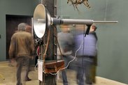 Künstler, die zuweilen wie Erfinder sind, und Erfinder, die etwas von suchenden Künstlern haben, teilen miteinander, dass sie Neues schaffen, was es vorher in dieser Form noch nicht gab. Weil die Frage nach dem kreativen, künstlerischen, erfinderischen Akt im Verhältnis zwischen Künstler, Kunstwerk und Betrachter oft ausgespart bleibt, stellt die Ausstellung „An das Gerät!“ den Entstehungsprozess mit dessen Apparaten und Einrichtungen, Vehikeln und Instrumenten, Behelfsvorrichtungen und Anordnungen in den Vordergrund. Das Gerät, auch wenn es vom besonderen Erfindergeist des Künstlers zeugt, mag selbst kein Kunstwerk sein, sondern ein Vehikel auf dessen Vorstufe. Insofern ist die Ausstellung ein festliches, visuelles Loblied auf jene Gegenstände, Werkzeuge und Hilfsmittel, die im Prozess der Produktion eine instrumentale Rolle spielen, um ein Kunstwerk zu realisieren oder eine bestimmte Wirkung zu erzielen. Sie ist aber auch - angelehnt an den gleich lautenden Dienstbefehl bei der Nationalen Volksarmee, ausgerufen, bevor der Soldat seine Klimmzüge vollziehen durfte - eine Aufforderung, näher an das Gerät heranzutreten, weil es die optische Brücke zwischen künstlerischer Idee und finaler Umsetzung verkörpert.