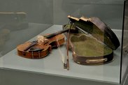 1972 reichte der Student des Bauwesens Klaus Hähner-Springmühl an der Ingenieur-Hochschule Cottbus die Exmatrikulation ohne Abschluss ein - mit dem Wunsch, Künstler zu werden. Fortan lebte er als mittelloser Bohemien nur für die Kunst. Seit den frühen Gehversuchen des Autodidakten im Umfeld des Künstlers A.R. Penck in Dresden gehörte das unkonventionelle Experiment mit neuen Medien, kollektiven Produktionsweisen und das Miteinander von Musik und bildender Kunst dazu. Provokation war nicht nur seine an den Rand der Selbstkasteiung gehende Askese, die ihm finanzielle Unabhängigkeit gab, und das martialische Auftreten des Zwei-Meter-Riesens mit geschorenem Kopf und langem Mantel; Provokation war auch seine nicht-narrative Kunst, die vielmehr einem Realismus des Materials anstatt einem sozialistischen Realismus huldigte. In einem abrissreifen Wohnhaus in Karl-Marx-Stadt schuf er einen Kunstkosmos als Freiraum, Mönchsgrotte und Aktionsbühne für sich und seinen Freundeskreis. Das Enfant terrible wurde zu einem Impulsgeber der oppositionellen Kunstszene der Arbeiterstadt. Hier agierte Hähner-Springmühl „flüssig zwischen Kunst und Lebensdreck“ (Christoph Tannert) in einer Lebensstruktur, die er als Kunst verstand. Zu ihr gehörte Verzicht ebenso wie rauschhafte Verausgabung. Seine Papierarbeiten, häufig Collagen aus zerfetzten und übertünchten Lichtbildern, waren ihm Spurensicherungen dieses Prozesses. Seine Mal-, Freejazz-und Performanceaktionen, die, wenn nicht zum Eklat, doch zur kollektiven Irritation führten, verdichteten sein Schaffen zu dem eines Lebenskunstwerktätigen. Das Nichtigste konnte Teil seines Kunstkosmos werden, wenn es von der individuellen Energie des Künstlers durchdrungen wurde. So unkonventionell wie er die Stereotype vom sozialistischen Künstler Schritt für Schritt zerstückelte, auf der Suche nach neuen Ausdrucksweisen und Wahrheiten, so unkonventionell entlockte er seinem Performance-Instrumentarium Klänge, zu dem neben einem Saxophon selbst konstruierte Hörner, Flöten und die in der Ausstellung gezeigte Geige zählten. „Manchmal war auch bloß die Zeit ein Konzept, wir haben uns einen Wecker hingestellt und gesagt, das Stück endet nach sechs Minuten. Manchmal haben wir gesagt, wir fangen leise an und steigern uns - also zwei oder drei Instrumente, die anderen schließen sich an oder spielen quer dagegen. Es war wie in der Malerei, wir haben ausprobiert, was möglich ist“, berichtet Hähner-Springmühls Weggefährte Ernst-Wolfgang Hartzsch. Diese Geige zeigt, als einziges im Nachlass verbliebenes