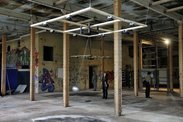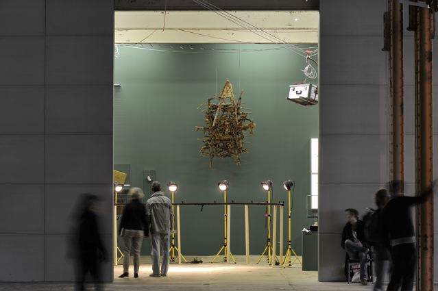 Punktgenau landete ein Transporthubschrauber auf dem Dach der Kunsthalle Recklinghausen und setzte eine Forschungsstation ab. Von hier aus starteten die Invasoren Heike Mutter und Ulrich Genth ihre „Metareflektor Luftoffensive“ an einen der sichersten Orte der Welt. Die Vorgehensweise ist an das Methodenrepertoire zeitgemäßer Urwaldexpeditionen angelehnt, mit dem Forscher die tropischen Regenwälder aus der Luft erkunden. Deren Erschließung und Beobachtung erfolgt von oben, ohne Bodenberührung. So wird eine möglichst geringe Irritation des zu erforschenden Raumes angestrebt, weshalb man von diskreter Forschung spricht. Dieser Strategie folgend begab sich das Künstlerduo 2006 auf eine Entdeckungstour durch das präzise beschriebene Museumsumfeld. Die Forschungsstation wurde im Vorfeld der Expedition montiert und basiert auf einer für diskrete Forschung entwickelten, in sich stabilen Aluminiumkonstruktion. Heike Mutter und Ulrich Genth haben diesen Forschungskäfig für ihre Zwecke weiterentwickelt und verfeinert, so dass er allwettertauglich, innen vollständig ausgerüstet und groß genug ist, um sich zu zweit in ihm aufzuhalten. Er diente als Basiscamp, um die Invasion mit Hilfe von Seilen und Kletter-Equipment vom Museumsdach aus zu beginnen, indem Mutter und Genth durch ein Fenster in den Kunstraum eindrangen. Dort installierten sie nach und nach ein hängendes System aus Plattformen, Ebenen, Netzen, diversen Instrumenten und Geräten, das es den beiden Künstlern ermöglichte, die Ausstellungsräume ohne Bodenkontakt zu erschließen. Damit sind ihre Raumbewegungen gegenläufig zu den üblichen Besucherströmen, die sich von unten nach oben durch das Gebäude bewegen. Die Gäste unserer Ausstellung können an der Hallendecke Raststationen und Fallen inspizieren, die für die „Metareflektor Luftoffensive“ konzipiert und eingesetzt wurden.