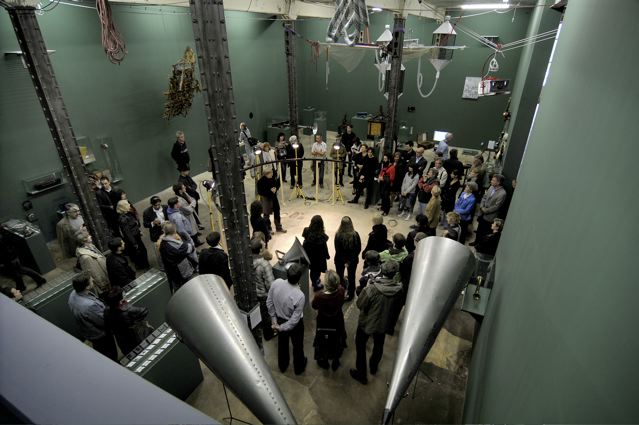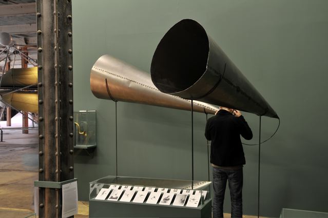 „Wo Abhörapparate mit Selbstverständlichkeit verwendet werden, da ist die Hauptvoraussetzung des Totalitarismus geschaffen“, behauptet der österreichische Sozialphilosoph Günther Anders (1902-1992) in seinem Buch „Die Antiquiertheit des Menschen“. Spätestens seit dem 1. Weltkrieg wurden außergewöhnliche Abhöreinrichtungen konstruiert, um die Vorhaben des Feindes auszuspionieren. Einige der imposanten Apparate waren in keiner Weise funktionsfähig, sondern dienten der Einschüchterung und Irreführung. Ihre psychologische Wirkung war hingegen gewaltig. Inspiriert von diesem Abhör-Arsenal aus dem 20. Jahrhundert, der Überwachungsmaschinerie des Kalten Krieges, plant Ingrid Hora die Produktion einer Serie großer, zeitlos und wissenschaftlich anmutender, mobiler Hör-und Messeinrichtungen, die „im Morgengrauen an verschiedenen Orten langsam auftauchen, wie eine stille, rätselhafte Invasion. Sie spielen mit der Vorstellungskraft der Schaulustigen, erzeugen möglicherweise Paranoia, rufen kollektive Erinnerungen ins Gedächtnis zurück, lösen Verschwörungstheorien aus. Ihrem Anschein nach sind es funktionale Geräte, deren Bediener in schnittigen, sterilen Outfits in unregelmäßigen Abständen erscheinen, allerdings keine Erklärungen an potenzielle Zaungäste abgeben können, denn sie wissen lediglich um die außerordentliche Wichtigkeit, diese Maschinen zu betreiben.“ (Ingrid Hora) Polizei und Geheimdienst sind nicht die einzigen Instanzen, deren Organe sich akustischer Bloßstellung und damit der Nacktheit der Anderen bedienen. „Belauscht werden Parteileute durch Parteileute, offizielle Stellen durch andere offizielle Stellen, Forschungsinstitute durch Militär, Firmen durch Konkurrenzfirmen, Kunden durch Geschäftsleute, Geschäftsleute durch Kunden, Ehefrauen durch Ehemänner, Ehemänner durch Ehefrauen, ganz zu schweigen von den Abertausenden so genannter ›snoopers‹, Schnüfflern, die davon leben, dass sie abgehörte Geheimnisse verkaufen oder zu verkaufen drohen. Aus der Diktaturzeit wissen wir ja, dass man sich von dem Augenblicke an, in dem man es für möglich oder auch nur für nicht unmöglich hält, dass man unter Kontrolle stehe, anders fühlt und anders benimmt als vor diesem Augenblicke.“ (Günther Anders)