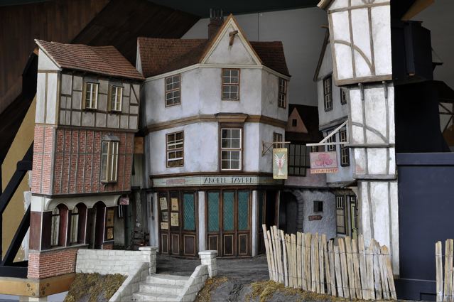 Sieben Monate arbeitete das Geschwisterpaar Annette und Steffen Schäffler an der Kulisse für den Puppentrickfilm „Der Perückenmacher“ (1999). London im Jahr 1665 diente als Szenerie. In minutiöser Kleinstarbeit wurde jeder Dachziegel der Kulisse per Hand gefertigt und ins Set eingefügt. Am Ende entstand eine 10 mal 4 Meter große, aufwändig ausgestaltete Kulisse, die den Moloch zur Zeit der großen Pest in Miniaturform nachbildet. Das in der Ausstellung gezeigte Set ist ein Teil der ursprünglichen Kulisse. 33 Auszeichnungen und eine Oscar-Nominierung als bester animierter Kurzfilm bekam „Der Perückenmacher“, der zu großen Teilen auf Daniel Defoes fiktivem Report „A Journal of the Plague Year“ („Die Pest zu London“, 1722) basiert. Erzählt wird (mit der Stimme des britischen Schauspielers Kenneth Branagh) die Geschichte eines Perückenmachers, der sich aus Angst vor Ansteckung in seinem Laden verbarrikadiert, von dort aus das Geschehen beobachtet und über die Gründe der Seuche sinniert. Als sich ein Mädchen aus seiner Nachbarschaft Hilfe suchend an ihn wendet, verweigert er sich. Später muss er erfahren, dass der Schwarze Tod auch das Mädchen ergriffen hat, und entdeckt, dass ihr Leichnam mit dem vieler anderer aufgekarrt und fortgeschafft wird. Er gibt seine Isolation auf und begibt sich an die offene Leichengrube. Dort findet er ihren leblosen Körper und schneidet ihr die leuchtend roten Haare ab, nimmt sie an sich und knüpft daraus - nun angesichts des eigenen Todes - eine Perücke.