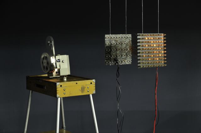 Was wäre, wenn 1880 der französische Ingenieur Maurice Leblanc (1857-1923) nicht die bis heute gültigen Prinzipien zur Übertragung von Bildern mittels Elektrizität festgelegt hätte? Das Konzept der Zerlegung von Bildern als Lichtimpulse in einzelne Bildpunkte und -zeilen stammt von ihm. Was wäre, wenn der deutsche Erfinder Paul Nipkow (1860-1940) diese Bildzerlegung nicht durch die Erfindung der Nipkow-Scheibe 1883 praktisch möglich gemacht hätte? Der US-amerikanische Erfinder Philo T. Farnsworth (1906-1971) stellte diese dann 1928 in ihrer bis ins frühe 21. Jahrhundert weitgehend unveränderten Form vor. Wäre dann das Bedürfnis nach elektronischer Bildübertragung so groß gewesen, dass sich vielleicht eine andere, theoretisch einfachere, aber praktisch umständlichere Technologie durchgesetzt hätte? Dieser Annahme geht der Medienkünstler Gebhard Sengmüller in seiner Installation „A Parallel Image“ (in Zusammenarbeit mit Franz Büchinger) nach. Zwei Lochrasterplatten aus Epoxidharz sind im Abstand voneinander von der Raumdecke abgehängt. Eine der Leiterplatten wurde als Kameradefiniert und mit einem Raster von lichtempfindlichen Widerständen bestückt. Die zweite Platte wurde als Bildschirm definiert und mit einem Raster aus Glühbirnen überzogen. Große Mengen von lackiertem dünnen Kupferdraht verbinden die beiden, so dass jeder einzelne Bildpunkt der Kameraplatte direkt mit jeweils einem Bildpunkt auf der Bildschirmplatte verbunden ist. Anders als die meisten modernen Mediensysteme bietet „A Parallel Image" eine unmittelbare Erfahrung der Funktionsweise des Apparats. Die Besucher können selbst in diese interaktive Skulptur eingreifen: Wenn die Umrisse ihres Schattens auf die Kameraseite fallen, erscheinen sie ohne Verzögerung auf der Bildschirmseite. Der fertigen Installation, die unter anderem bei der transmediale 2010 zu sehen war, ging die in der HALLE 14 gezeigte, funktionsgleiche Version im verkleinerten Maßstab (1:5) voraus, in der Sengmüller die Funktionsweise seiner Gedankenkonstruktion austestete, bevor er die aufwändige Endkonstruktion begann. Über seinen Arbeitsprozess berichtet der Künstler auf seiner Internetseite: „Mir wird es zunehmend wichtiger, möglichst viele der notwendigen Schritte zur Schaffung eines neuen Kunstwerks selbst kontrollieren zu können. Bei ›A Parallel Image‹ versuchte ich, ein Prinzip zu entwerfen, das ich auch tatsächlich selbst realisieren kann. Der Aufbau der Installation entspricht meinem beschränkten Technikverständnis und macht einen immensen Zeiteinsatz beim Verlöten von etwa 2.500 Kabeln notwendig.“