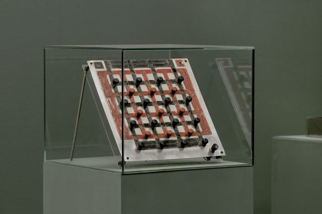 Das in der Ausstellung gezeigte „Switching Game“, auch Birdcage oder Bridge-It genannt, ist ein Nebenprodukt Shannons intensiver Auseinandersetzung mit der Spieltheorie. Es handelt sich um ein Schaltungsspiel, das auf einem endlichen Raster gespielt wird. In diesem Raster befinden sich zwei spezielle Knoten: Die Endterminals. Zwischen diesen Terminals fließt Strom, die weiteren Knoten des Rasters sind gleichwertige Widerstände. Ziel ist es, zwischen den Endterminals einen offenen oder einen geschlossenen Schaltkreis herzustellen. Der erste Spieler heißt Open. Er unterbricht einzelne Knotenpunkte im Raster. Der zweite Spieler namens Short verbindet die Knotenpunkte dagegen. Open gewinnt, wenn die beiden Endterminals getrennt sind und ein offener Schaltkreis vorliegt. Short gewinnt, wenn der Schaltkreis geschlossen ist, das heißt, wenn beide Terminals verbunden sind. In diesem Spiel trat Shannons Apparat gegen seinen menschlichen Kontrahenten an. Dabei zeigte die analoge Maschine ihre jeweils nächsten Züge mittels eingebauter Lämpchen an. Shannon wollte damit seine optimale Gewinnstrategie austesten: die Maximum-Current-Strategy. Maximaler Stromfluss in einem Knoten weist auf dessen strategische Bedeutung im Raster hin. Die Maschine gewann mit dieser Strategie regelmäßig gegen ihre menschlichen Gegenspieler. Praktische Bedeutung hat dieser Lösungsansatz für den Aufbau und den zuverlässigen Betrieb großer Telefonnetze.