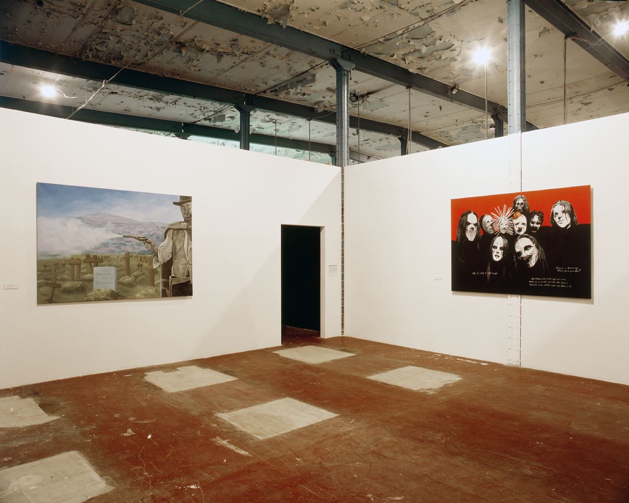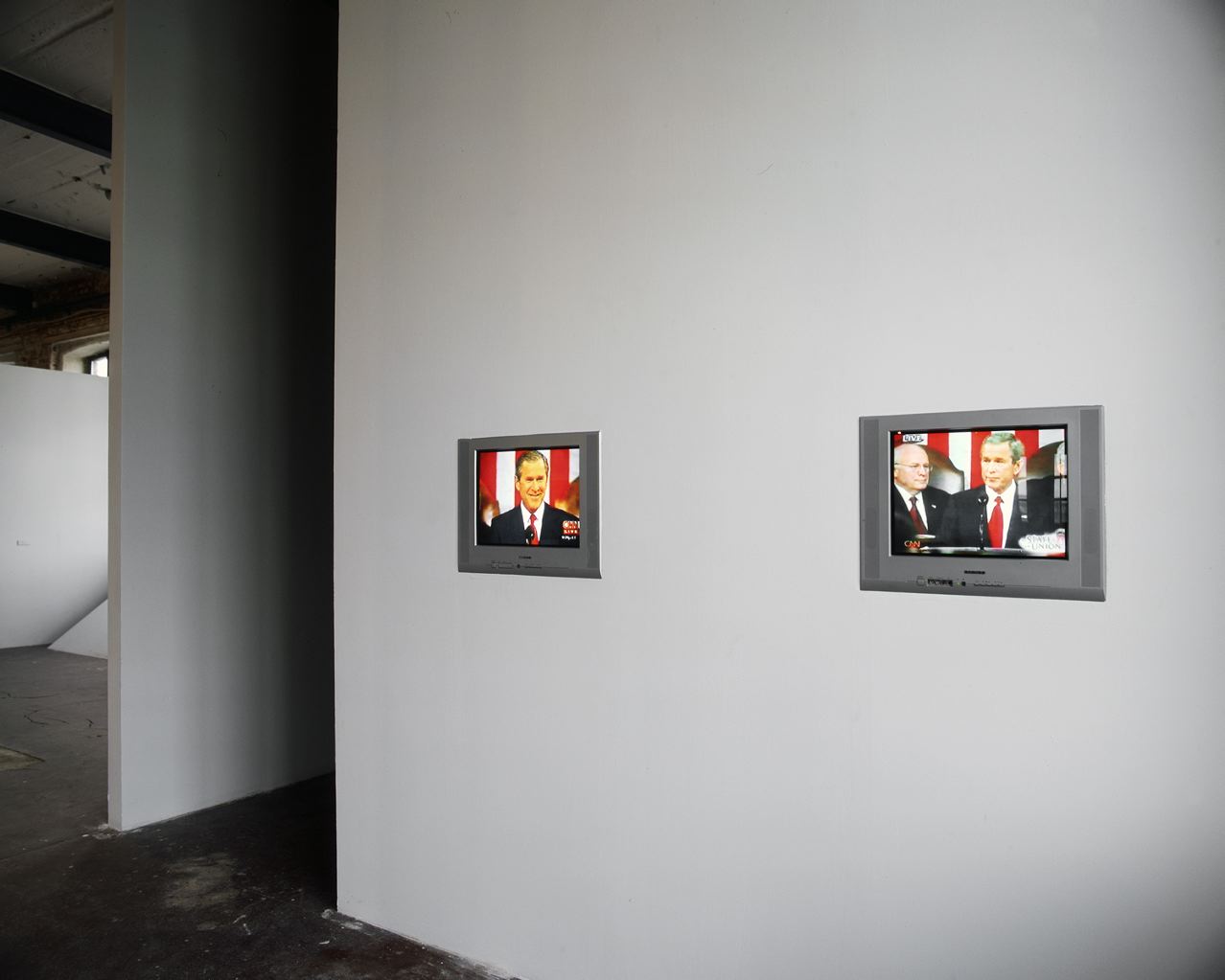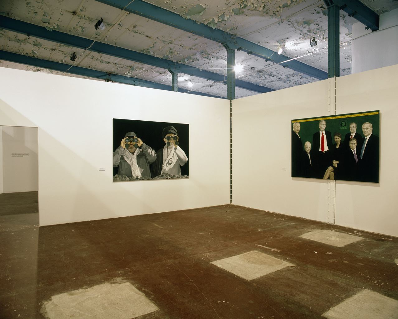 Die vier großformatigen Ölbilder „As I Opened Fire“, „I Shot A Kennedy“, „Suddenly This Overview“ und „Les_Jumelles“ (alle 2004) von Caroline Bachmann und Stefan Banz (CH) aktualisieren ein klassisches Genre der Malerei, das Porträt. Die Gemälde zeigen amerikanische Politiker, „Death-Metal“-Musiker, bekannte Filmhelden und nicht näher identifizierbare politische, militärische oder religiöse Entscheidungsträger des Nahen Ostens, je in einer charakteristischen Pose, wodurch deren nicht nur habituelle Verwandtschaft in der Gegenüberstellung der Bilder erahnbar und sogleich untergründig ironisiert wird.