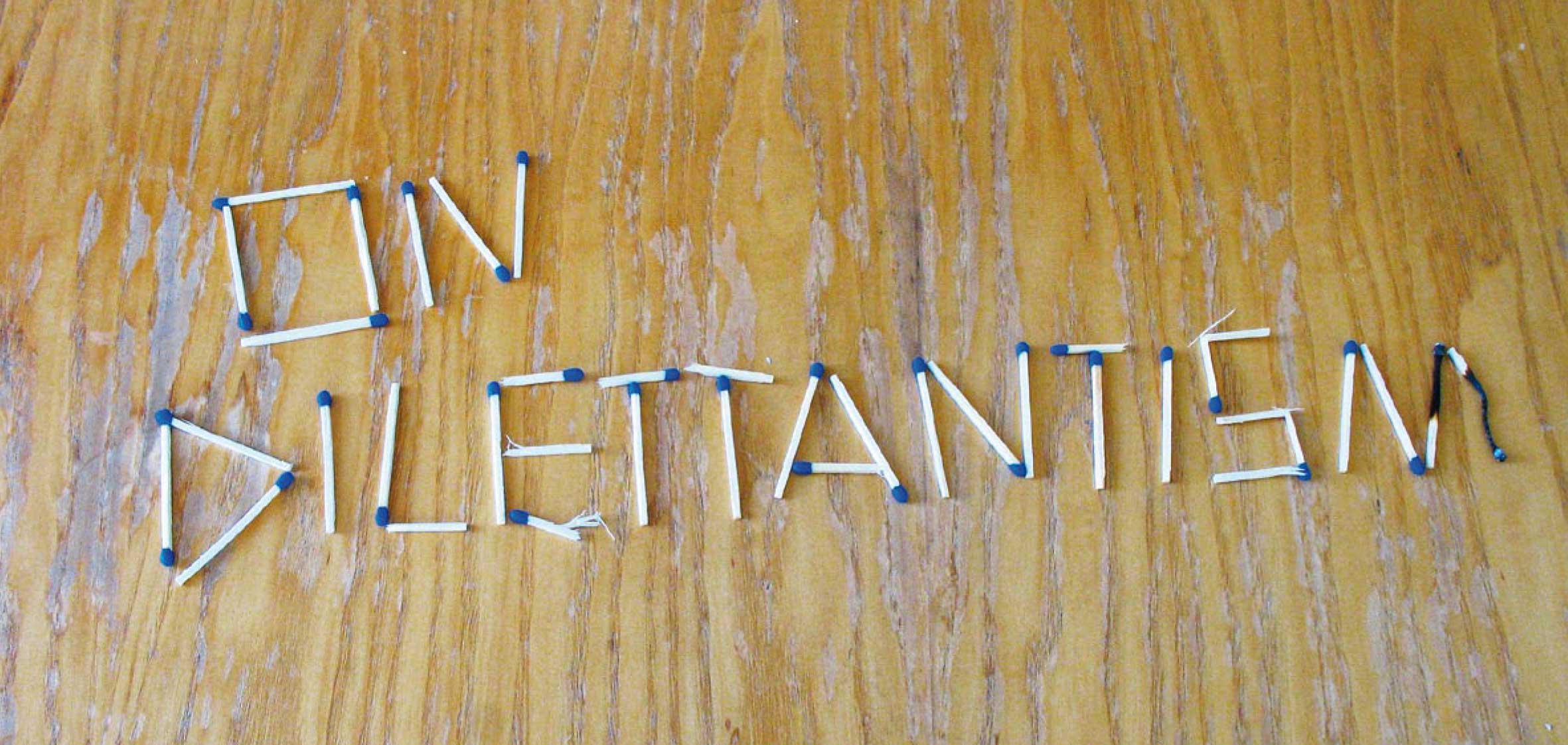 Und doch scheint es, als seien das Laienhafte, Hobbymäßige, die Liebhaberei, das Ungelernte, Unstudierte und Autodidaktische wesentliche Triebkräfte, ohne die unsere Welt heute anders aussähe. Der Dilettantismus wird– künstlerisch gewendet– zum Freiheitsbegriff, zur lohnenswerten künstlerischen Praxis. Zwischen seinen Bedeutungen und Widersprüchlichkeiten lässt sich’s nutzbringend oszillieren, spielerisch entdecken, kritisch an der Zukunft werkeln. Gehört dem professionellen Amateur die Zukunft?