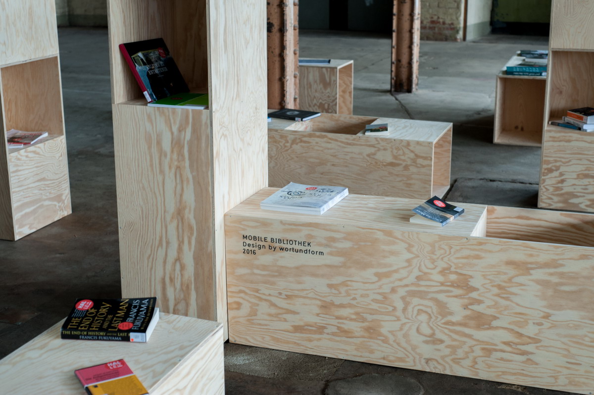 Die Mobile Bibliothek besteht aus einzelnen Tools, die sowohl im Ausstellungsraum, als auch bei Open-Air-Veranstaltungen einsetzbar sind. Dank ihrem vielseitigen Design dienen die einzelnen Elemente nicht nur der Aufbewahrung von Literatur, sondern können gleichzeitig als Tische, Sitzgelegenheiten oder Projektionsflächen genutzt werden. Es ist ein individuelles kombinierbares System, bei dem jede Intervention der Besucher zu einer neuen räumlichen Konfiguration führt. Die Mobile Bibliothek ist nicht nur Reflexions- sondern auch Interaktionsort.