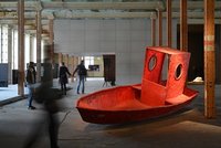 Der Bau des Bootes, davon erzählt das kleine Modell, lehnt sich an ursprüngliche Entstehungsmythen an, denn seine Form wurde aus Erde gewonnen, dem Element, aus dem alle Organismen entstehen und wieder vergehen. Aufgehäuft diente sie als Negativform für die Fiberglaskonstruktion. Es ist eine handwerkliche Tätigkeit, deren Spuren wir am Objekt selbst genau studieren können. Das Boot ist nicht nur ein tatsächliches Boot, sondern gleichermaßen sein Symbol.