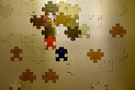 Acht Puzzlestücke haben Chim↑Pom aus Japan mitgebracht. Die meisten stammen aus Tokio. Sie wurden aus einem Kinderbett, aus dem Zimmer eines „lokalen, japanischen Popsternchens“, aus einer Restaurant-Werbetafel, aus einer Obdachlosenbehausung, aus dem Büro eines Suppenherstellers und einem Club, in dem Frauen männliche Begleitung an die Seite gestellt wird, herausgeschnitten. Ein weiteres stammt aus einem Landhaus in den Bergen der Region Tokushima und ein anderes aus einem aussortierten Grabstein von Insel Awaji-shima. Diese werden durch fünf neue Puzzleteile aus Deutschland ergänzt: Drei wurden in Weimar aus einem ausrangierten Ausstellungsdisplay der Gedenkstätte Buchenwald, einem Privatauto japanischer Herkunft und der Rückwand eines beheizbaren Tresors aus der der ehemaligen Staatsbank der DDR herausgetrennt. Eins stammt aus der ehemaligen Stasizentrale in Berlin und das Fünfte aus einem Dresdner Schlachthof.