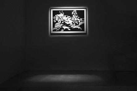 Die Arbeit „Regnum Alba“ - „Das Weiße Königreich“ - bezieht sich auf eine bestimmte Tiergruppe in Carl von Linnés berühmter Publikation „System Naturae“, die Tiere ohne Pigmentierung umfasst. Auf dem Bild versammeln sich collageartig über fünfzig verschiedene Vertreter bestimmter Tierrassen, die aufgrund von Mutationen unter dem Gendefekt Leuzismus leiden und keine Farben oder Pigmente ausbilden können. Diese Tiere weisen meist weißes Fell und helle Haut auf, da die Haut im Unterschied zum Albinismus keine Melanozyten enthält. In der Forschung gibt es dazu etliche wissenschaftliche Abhandlungen, die einen Zusammenhang zwischen Umweltverschmutzung und Leuzismus herstellen. In unserer Wahrnehmung verleihen Farbgebung und Mustervariation Tieren Identität und definieren gleichermaßen ihre Schönheit.