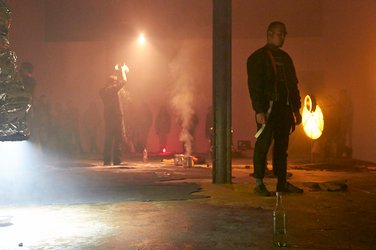 Im Anschluss entführten die DJs Andy McCornrich und YourNailsareFascists,Megatron das Publikum in die Welt des Electro-Noize. Parallel lief Stephan Murers futuristische Filmfantasie „Gelb“ über Weltraumreisende. Als der letzte Gast gegangen war, verpackte Stefan Riebel „die Kunst“ in eine eigens angefertigte Transportkiste, die für die nächsten 1.000.010 Jahre als Monument dieses vergänglichen Abends in der HALLE 14 verbleiben soll. Sie bleibt das Monument dieses vergänglichen Abends. Hier ein Fotostream: http://www.flickr.com/photos/sr4838/12139966276/in/set-72157639881304334/