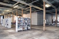 Die hiesige Kunstbibliothek ist ebenfalls Teil des Ausstellungsparcours. Die Besucher können anhand der ausstellungsspezifisch gesammelten Buchkonvolute die Ausstellungsgeschichte der HALLE 14 nachvollziehen. Gleichzeitig lädt die Präsentation dazu ein, sich selbstständig in künstlerische Positionen, Projekte sowie inhaltliche Knotenpunkte der aktuellen Ausstellung »Räume sozialer Produktion« weiterführund einzulesen. In den Bücherregalen der Ausstellung sind u.a. Bücher zu Marina Naprushkina, Eva Grubinger, Kenneth Goldsmith, Neue Auftraggeber, Forensic Architecture oder Metahaven zu finden. Der Tagungsband »Wie Architektur sozial denken kann« führt die Leser noch einmal zum Ursprung des Kunstzentrums, das 2002 mit der gleichnamigen Tagung über die gesellschaftliche Verantwortung von Architektur und Kunst begann.