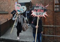 Die 10. Klassen des Geschwister-Scholl-Gymnasiums Taucha haben sich gemeinsam mit den Künstlern Heide Nord und Georg Weißbach in einem Literatur-Installations-Projekt der Parole »I don't need society« gewidmet. In den Workshops konnten die Jugendlichen ihre Wünsche, Thesen und Aufrufe für eine nahende Zukunft gestalterisch formulieren. Diese wurden entweder auf Schildern in einer selbstinitiierten Demonstration präsentiet oder als einzelne Mauersteine zu einer gemeinschaftlich gebauten Wand aus Pappkartons zusammengefügt.
