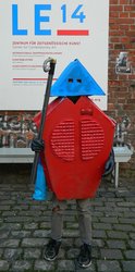 Im August wurde die HALLE 14 zwei Mal von kleinen Roboterwesen bevölkert. Das Kunstvermittler-Team hatte Kinder zwischen 7 und 12 Jahren zum Entwerfen, Basteln und Bauen eigener Roboterkostüme eingeladen. Mit Begeisterung kreierten die Teilnehmenden der beiden Sommerferienkurse ihre Roboterpersönlichkeiten, die vom Technik-Team mittels angebauter Lämpchen sogar zum Leuchten gebracht wurden. Am Ende der jeweils drei ereignisreichen Tage wurden die Kostüme bei einer Roboterparade über das Gelände der ehemaligen Baumwollspinnerei zum Einsatz gebracht.