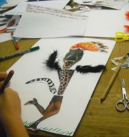 In der ersten Juniwoche besuchten drei 3. Klassen der Freien Grundschule Clara Schumann unsere aktuelle Ausstellung „Das Hybris-Projekt. Hochmut und sisyphale Vergeblichkeit“. Studierende des Instituts für Kunstpädagogik der Universität Leipzig konnten im Rahmen eines Rezeptionspraxis-Seminars ihre eigenen Vermittlungskonzepte erstellen und zusammen mit den Grundschülern umsetzen. Zwei Gruppen beschäftigten sich mit den „Federkindern“ von Lucy Glendinning, eine Gruppe arbeitete zu Tobias Regensburgers Hubschrauber-Skulptur aus Zivilisationsmüll „CAMP 2015 [LEJ]“. Nach einer ersten Betrachtung der Werke setzten die Schülerinnen und Schüler ihre eigenen Vorstellungen in Collagen oder kleinen Objekten um.