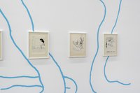 Abb.: Ausstellungsansicht, Anna Haifisch, The Artist, Songst to the Feather, 1. Akt (2017/18) (Detail), Tuschezeichnungen, Stiftung Galerie für zeitgenössische Kunst, Foto: HALLE 14 | Büro für Fotografie