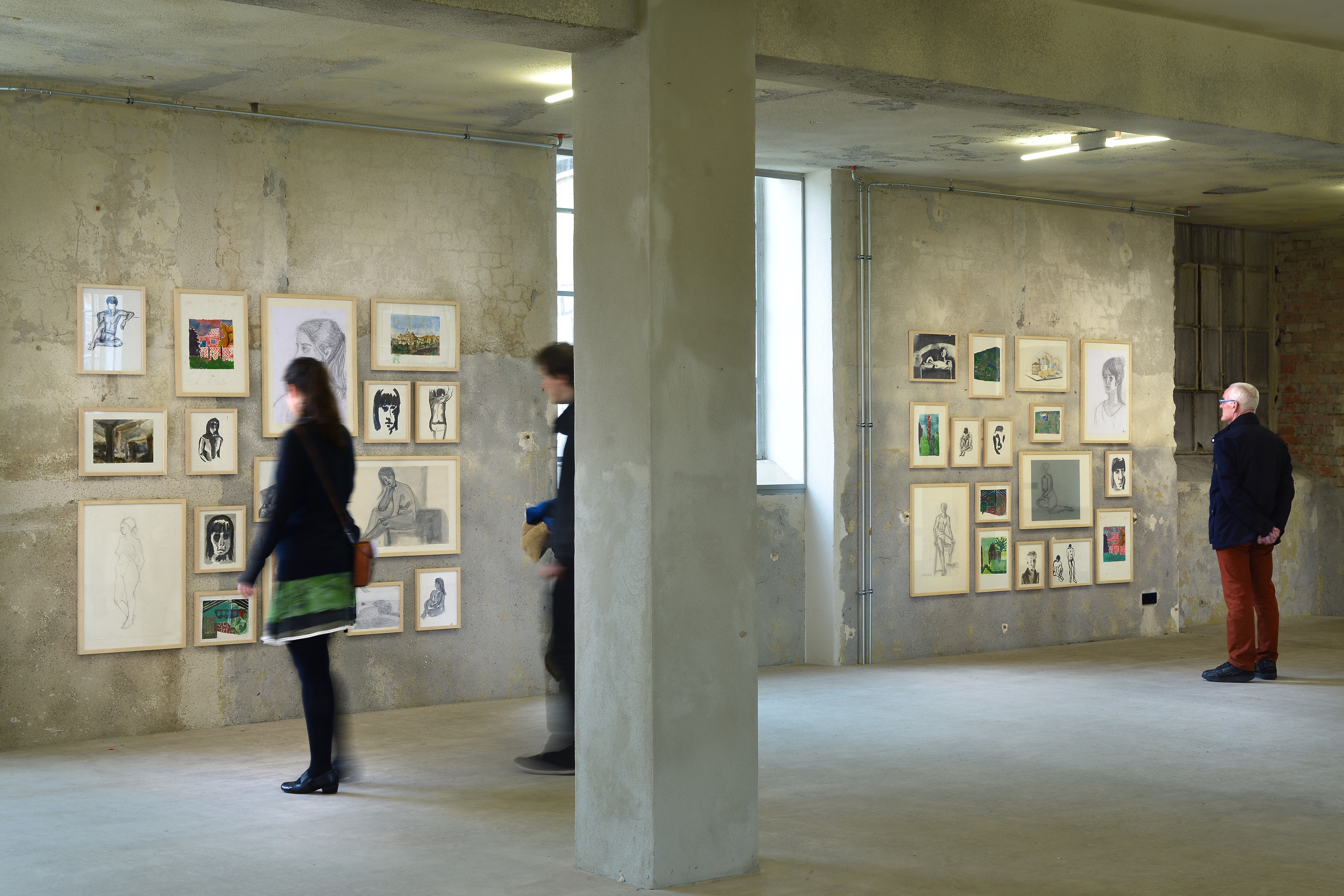 Präsentation des Zeichenzirkels in der Kunstvermittlung der HALLE 14, 2015