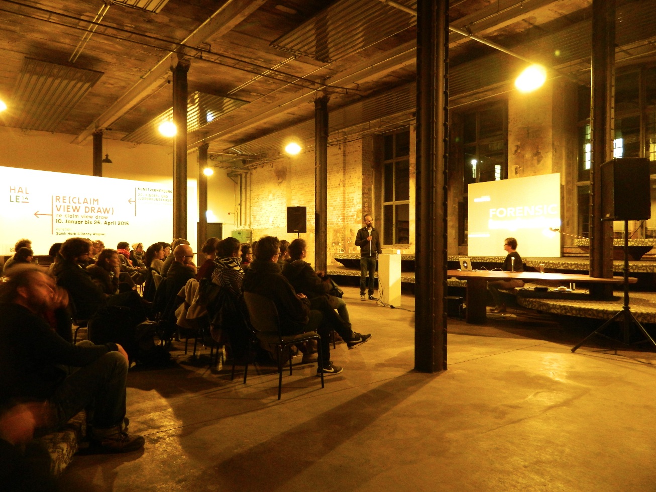 Im Rahmen unserer Ausstellung RE (CLAIM VIEW DRAW) lud HALLE 14 zum Filmgespräch mit der Künstlerin und Forscherin SUSAN SCHUPPLI (Centre of Research Architecture, Goldsmiths University of London). Zu sehen war Schupplis Essayfilm „Material Witness“ aus dem Jahr 2014, in welchem Kriegsverbrechen in Sri Lanka und Izbica, Kosovo, untersucht und einander experimentell gegenüber gestellt wurden. Mit wissenschaftlichen Methoden, dokumentarischem Material und künstlerischen Mitteln begibt sich Susan Schuppli im Film auf Spurensuche entlang der Grenzlinien von Echtheit und Interpretierbarkeit ihres Materials, um zu erkunden, was dieses über Orte und deren Geschichte preisgeben kann. Schupplis Reflexionen über Bildmaterialien als Zeugnisse von Geschehnissen erweitern das Spektrum von Samir Harbs und Danny Wagners Positionen, die in RE (CLAIM VIEW DRAW) gezeigt wurden. Beide Künstler beschäftigten sich mit Fragen der Narrativität in geografisch und politisch geformten urbanen und unbewohnten Räumen sowie deren Wahrnehmung und Darstellung durch medial vermittelte Bilder.