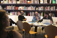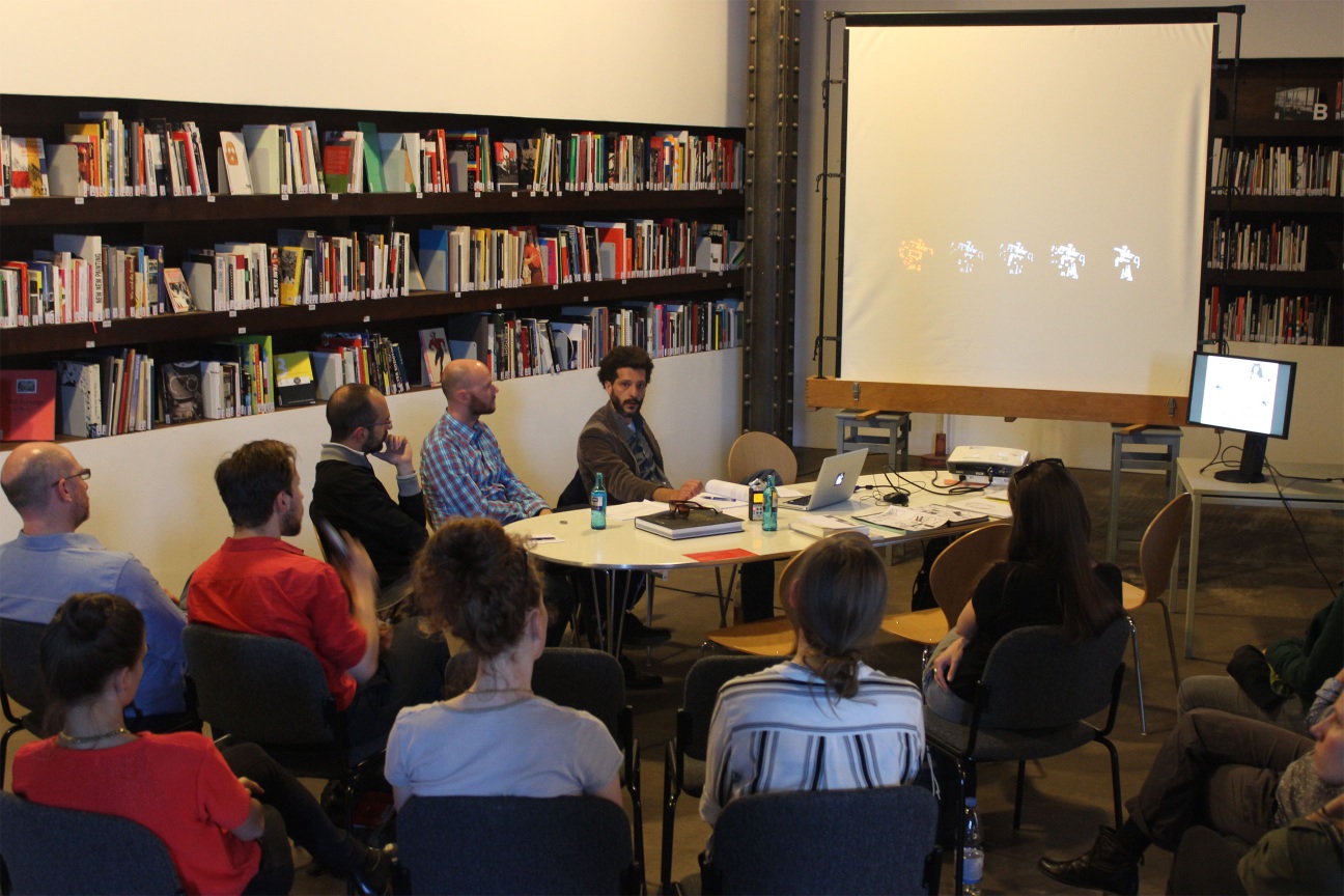 Im Rahmen eines Austauschprojekts zwischen Akademie Schloss Solitude (Stuttgart) und der HALLE 14 (Leipzig) arbeiten der Architekt und Comickünstler Samir Harb aus Ramallah und der Leipziger Künstler Danny Wagner zusammen. Zum Abschluss ihres gemeinsamen Aufenthalts in Leipzig stellten die zwei ihre Arbeitsweisen in einem Künstlergespräch vor. Trotz ihrer unterschiedlichen Hintergründe, Herkunft und Werke teilen die beiden Künstler, dass sich ihre Arbeiten, denen komplexe, historische und kartographierende Recherchephasen vorausgehen, um das Medium der Zeichnung drehen. Während Harb seine Recherchen in Comiczeichnung und Graphic Novels verdichtet, bearbeitet Wagner die Papierbögen mit Graphit so intensiv, das sie skulptural werden.