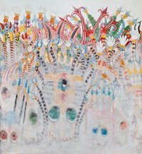 Louise Blake befasste sich während ihrer Zeit in der HALLE 14 vor allem mit dem Medium der Wasserfarben. Besonders die strukturale Komplexität abplatzender Farbteile der Ziegelwände stand im Fokus ihres Interesses. Die skurrilen Muster, die sich aus zufällig entstehender Ablösung ergeben, faszinierten sie und brachten einige beeindruckende Arbeiten hervor. In einer Serie von Bildern entwickelte sie halbabstrakte Kompositionen zwischen mikroskopischen und teleskopischen Welten.