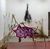 Abbie Baldwins Skulpturen, Installationen und Radierungen beschäftigen sich mit dem Kreislauf von Leben und Tod und den damit verbundenen Übergangszuständen von Körperlichkeit. In Leipzig hat sie sich mit der Idee des Sammelns beschäftigt und mit gefundenen Materialien wie Draht, Tinte, Insekten und Feuer experimentiert.
