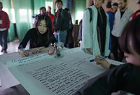 Für ihre Leipziger Recherche hat sie als Fallbeispiele die Demokratiebewegungen Friedliche Revolution in der DDR 1989 und den Gwangju-Aufstand 1980 in Südkorea untersucht. In ihrer Performance präsentierte sie den Stand ihrer Recherche an den Schnittstellen zwischen analog und digital, Training und Lernen, Alltagsroutinen und Ritualen, persönlicher Erinnerung und kollektiver Geschichte.