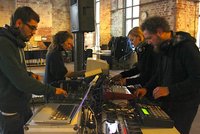 Die Jungs von „Strom ohne Ende“ sind erfinderisch und strampeln für die Musik. Bis zu 200 Watt Strom können sie mit ihren Modulen erzeugen. Bis zum nächsten Sommer sollten die Waden stramm genug sein, um in Leipziger Parks unabhängig von öffentlichem Stromnetz und Notaggregaten die Nächte zu Tagen zu machen. Zu unserem Festival brachten sie einige der Module mit und erfüllten das Besucherzentrum der HALLE 14 mit selbsterzeugten, elektronischen Klängen. Allerdings ist dabei die Unterstützung ihres Publikums gefragt. Fahrräder konnten angeschlossen und Frühstücke verbrannt werden.